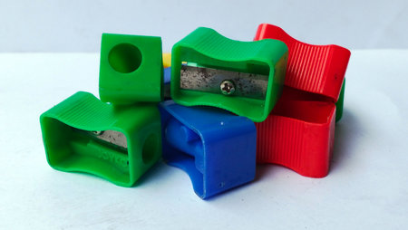 Colorful plastic pencil sharpener with white background