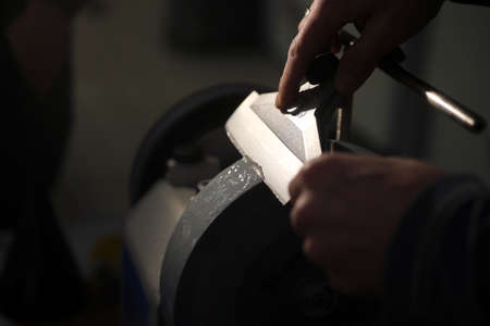 Closeup of jeweler is working at jeweller's workshop. Silver polishing