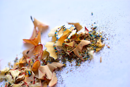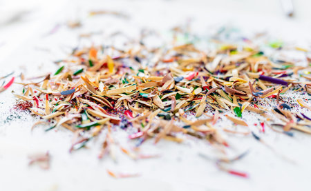 Colored Pencil Shavings In Action And Sharpening Pencils Viewed From Above