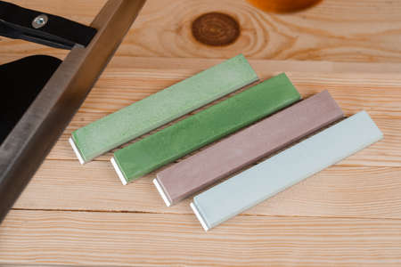 Set of professional whetstone for sharpener knife. Sharpener and whetstones