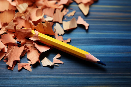 Vibrant Pencil Shavings on Colorful Wooden Canvas