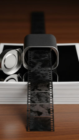 Close-Up Examination of Film Strip Under Magnifying Glass