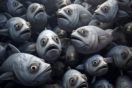 A group of sharks swimming silently through deep blue waters, creating an awe-inspiring, slightly eerie underwater scene.