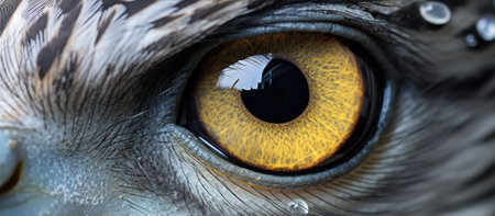 A mesmerizing close-up shot of a yellow eye, showing vivid detail and texture. This image highlights nature's beauty, ideal for photography projects, artistic inspiration, or biological