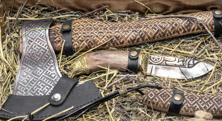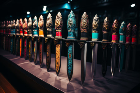 TBILISI, GEORGIA, September 18, 2018: Steel daggers with ornament.