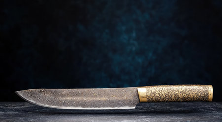 a wooden knife with a metallic handle, featuring intricate details inspired by celtic art. this highly realistic artwork showcases the craftsmanship of artists such as vray, art of burma, mehmed siyah-kalem, ruslan lobanov, and anato finnstark. ai generated