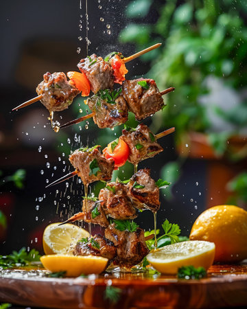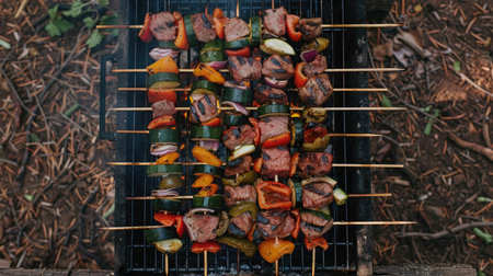 Enjoy a vibrant display of grilled skewers featuring juicy meat and fresh vegetables. Perfect for summer gatherings and outdoor cooking adventures.