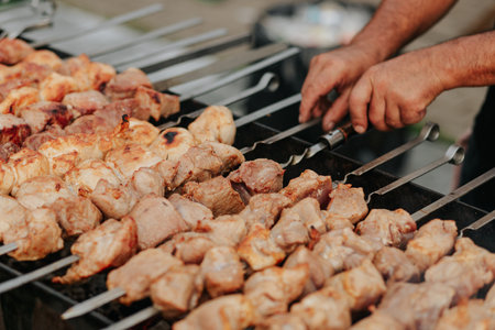 preparation of grilled meat on skewers tradition of meeting the new year holiday season