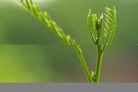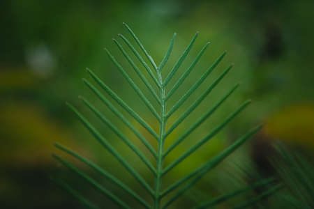 Macro picture of small thorn leaves and blur green nature background