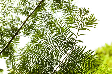Climbing Wattle or Acacia leaves on white backgrond.