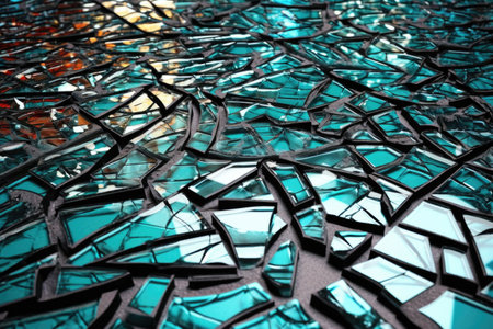 abstract pattern of shattered glass on tile floor, created with generative ai