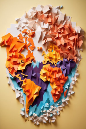 origami paper map of the world, in the style of organic forms blending with geometric shapes, paper cut in polka dot, origami shape, paper art, by ai generative