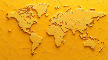 Vibrant yellow textured background featuring a world map, ideal for creative projects, educational materials, travel-themed designs, or modern art displays.