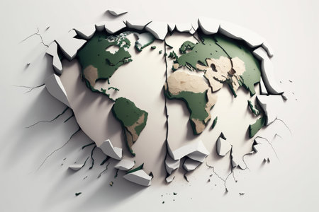 a globe with a crack running through it, created with generative ai