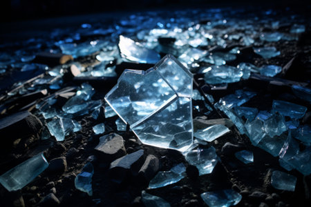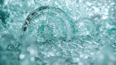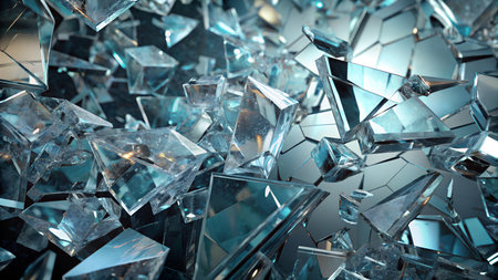 AI Generated. Shattered glass fragments in icy blue tones