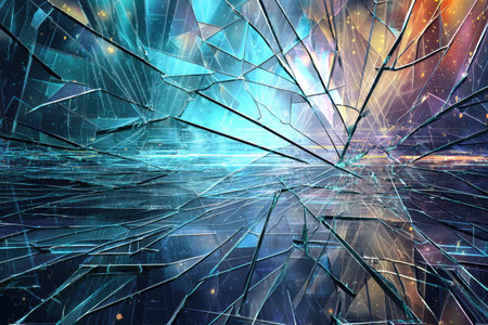This vibrant abstract image features broken glass that captures colorful light reflections, creating a dynamic and artistic visual effect perfect for modern designs.