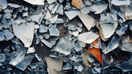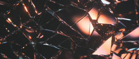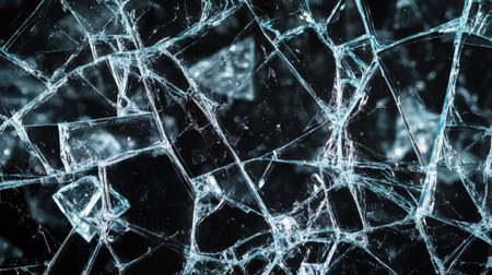 the captivating beauty of broken or shattered glass, focusing on the abstract patterns and textures that emerge from its fractured state. the artistic potential in the fragmented pieces,