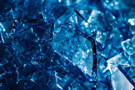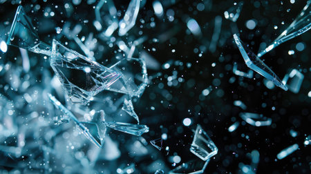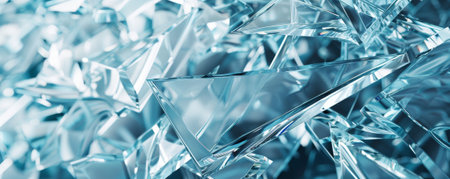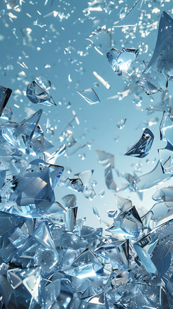 Shattered glass fragments in icy blue tones