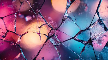 Hyper-realistic shattered glass texture with vivid colors and cinematic lighting