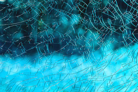 Broken glass with a blue background.
