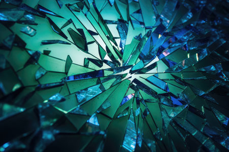 Shattered Glass in a Gradient of Blue and Green Hues