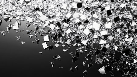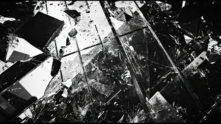 Shattered Glass Fragments Contrast Stark Black Background