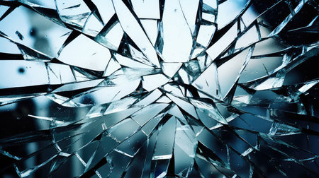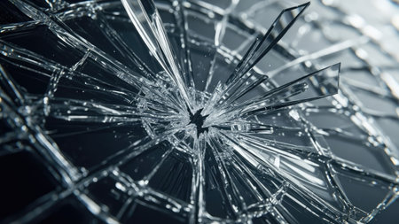 A stunning image of shattered glass creating a captivating pattern, illuminated by light. This abstract composition highlights the contrast between fragility and strength.