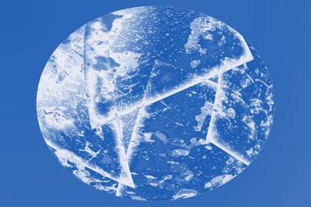 Broken glass ball on a blue background. 3d illustration.