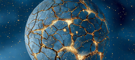 This striking image depicts the Earth fracturing, revealing its inner luminescence, symbolizing the urgent need for environmental awareness and action.