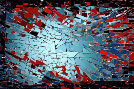 abstract background of broken glass with red, blue and black colors, Abstract pattern of a broken computer screen, AI Generated