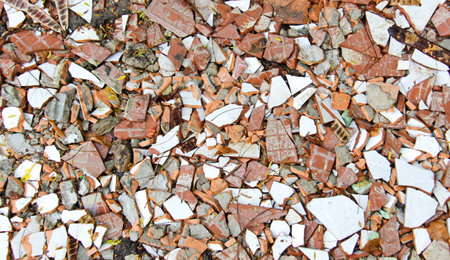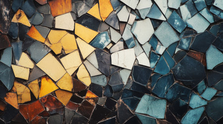 A stunning composition of broken ceramic tiles in diverse colors and textures, creating an artistic mosaic that adds character and uniqueness to any space.