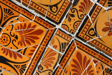 Detail of a mosaic in a park in Barcelona, Spain.