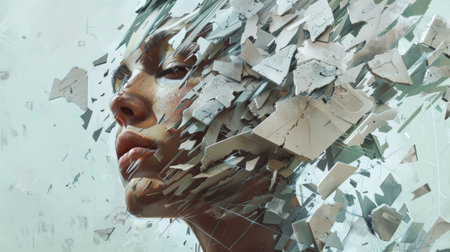 AI Generated. A composition of shattered glass with a digital twis also known ast where each shard reflects a different aspect of digital media
