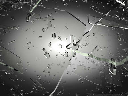 Pieces of glass broken or cracked or smashed, 3d illustration; 3d rendering