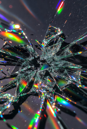Abstract image of shattered glass reflecting colors, creating a dynamic and captivating visual effect.