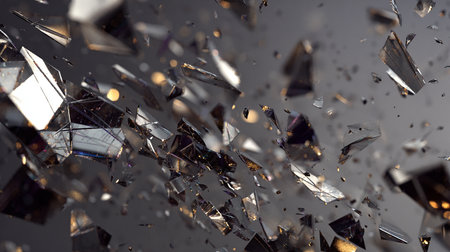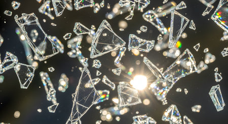 Stunning abstract image showcasing scattered glass fragments illuminated by light, creating a captivating visual spectacle filled with dynamic energy and beauty.