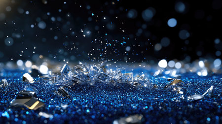 A stunning close-up of blue glitter mixed with sparkling crystal particles, creating an enchanting and festive atmosphere perfect for celebrations and events.