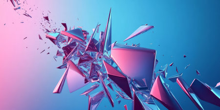 AI Generated. Shattered Glass with Pink and Blue Gradient Background