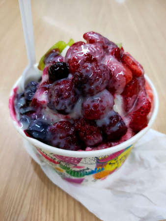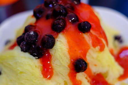 Dessert of Asia. The Asian people eat ice in summer to enjoy fresh hot. Abstract blur.