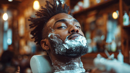 An AI generated illustration of a man getting a professional beard shaving at a barber shop