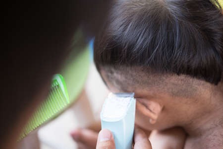Shaving the hair, Ordination ceremony of Buddhist monk. Thai tradition.