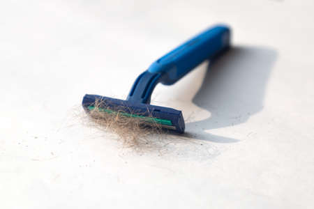 Gray man hair clippings. Bald man hairclipper, Mature baldness and hair loss concept.