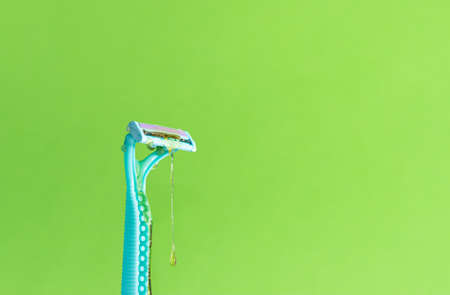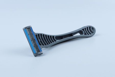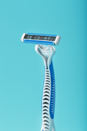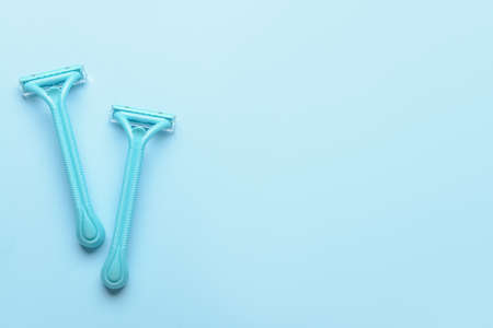 disposable plastic razor on blue background