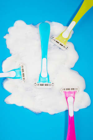 razor and foam soap bubble white washing shower