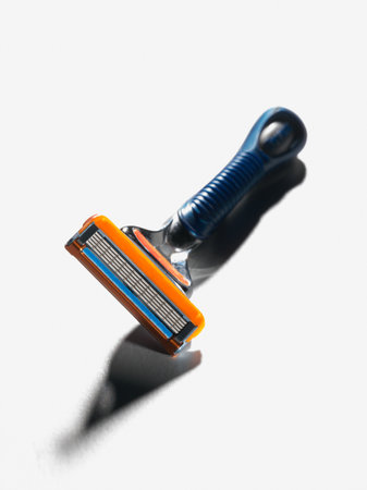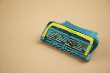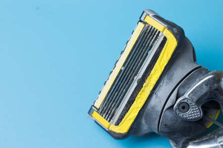 Used blue men razor. Studio shot isolated on white background.shallow dof