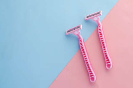 Women razor isolated on a pink background. Close-up. Beauty concept