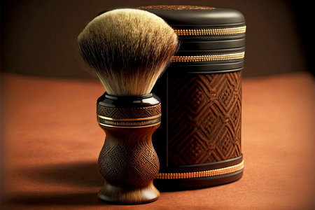 dry shaving brush for beard in designer case on brown background
