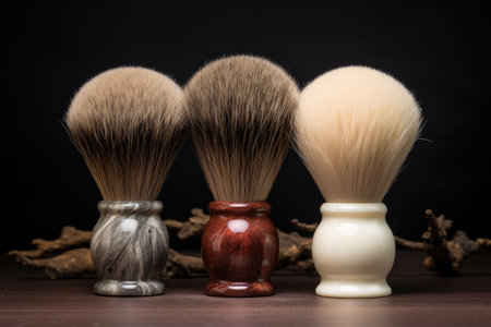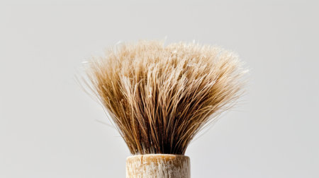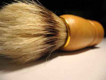 a close detail of a shaving brush made of wood and animal hair