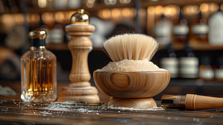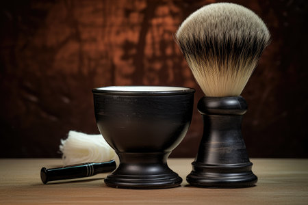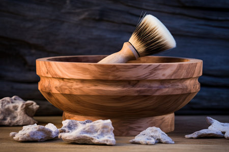 A shaving brush is seen sitting next to a bowl of soap. This image can be used to depict traditional shaving rituals and grooming routines.