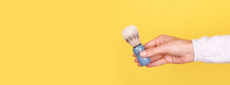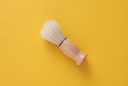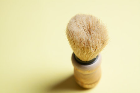 wooden shaving brush on yellow background